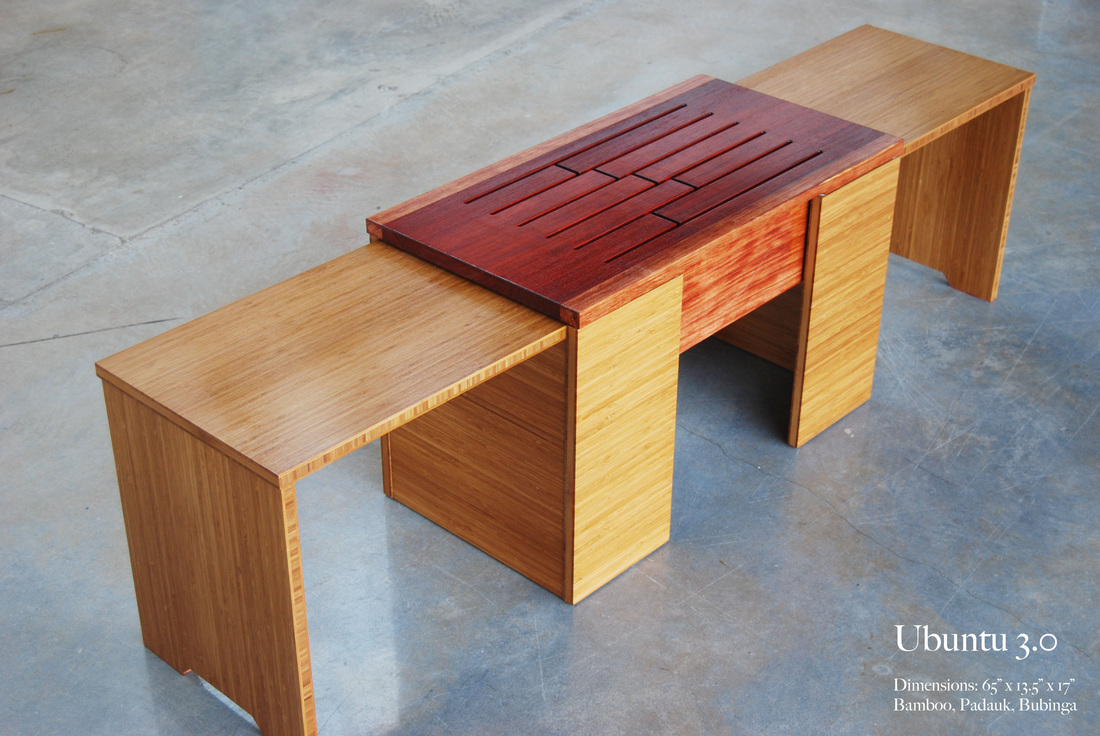 Using reclaimed materials from historic buildings or exotic hardwoods from around the world, Ben creates his signature Ubuntu sound-resonating furniture. Each piece transforms seamlessly from a beautiful design piece to a drum table that will impress and inspire your guests!