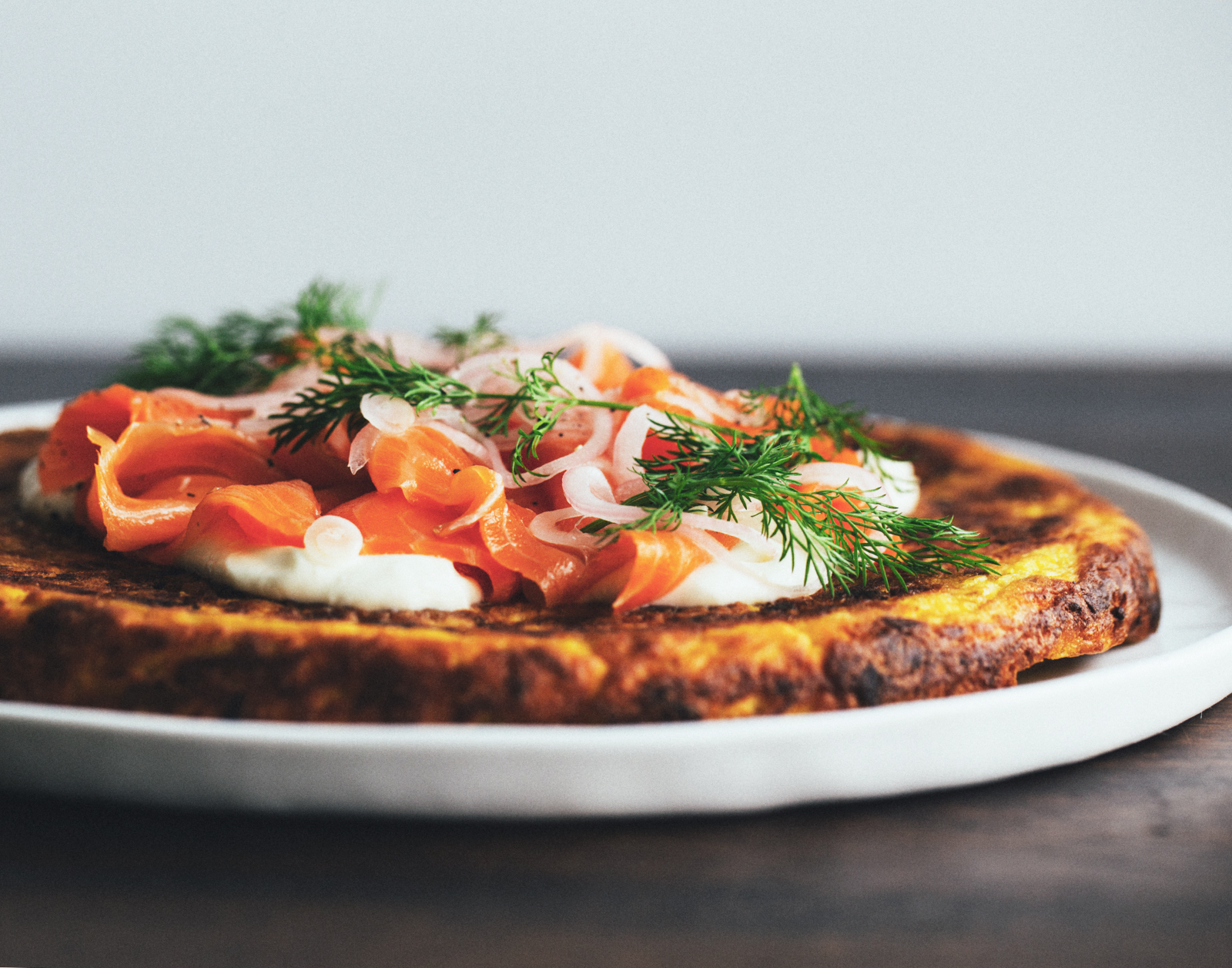 Eggs are the saving grace of poor organization and planning habits in our kitchen. Breakfast is often last night’s dinner with an egg cracked on it, seasonal veggies in some form of baked egg pie makes a pretty sweet lunch, and I won’t even begin telling you about all my ways with hard-boiled eggs. As far as baked egg pies go, you’re probably familiar with quiches and frittatas, but today I want to introduce you to my favourite – the veggie pancake.